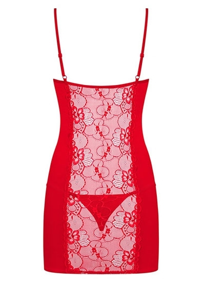 Figure-flattering lingerie dress with delicate lace at the front. The underwired cups create a breathtaking cleavage. The matching string is included. Adjustable straps.