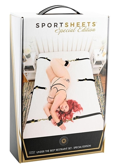 This Special Edition of our top selling Under the Bed Restraints takes play to another level. Easily incorporate your favorite restraint products utilizing the two additional restraint straps, now totaling six. Comfort with style is apparent with the addition of golden hardware including six durable, double sided clasps. Incorporate the lush soft blindfold to add anticipation to play. To use, simply slide the straps underneath your mattress for an instant bondage bedroom. Position the straps around the head of the mattress or around the sides. Pair with a feather, tickler, slapper or paddle. Use your free hands to tickle and tease your partner.