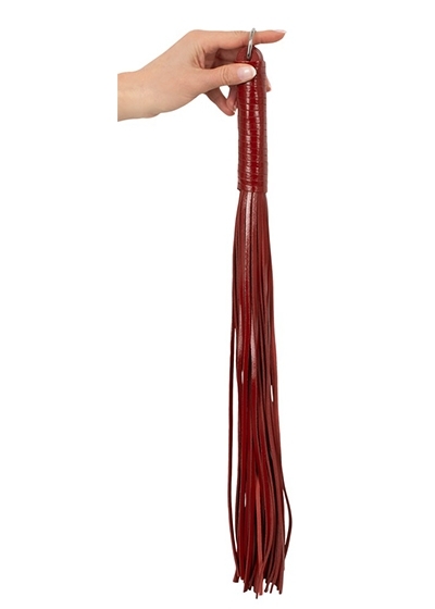 This flogger with an elegant touch is just the right instrument for games of pleasure and submission. The high-quality leather flogger in a beautiful shiny look with its braided handle feels great and balances well when it's being held. The numerous leather fronds means that a person will get exactly what they deserve: gentle strokes or stinging lashes. There is a metal ring at the end of the handle.