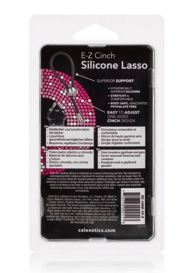 Enhance your pleasure tool and enjoy adventurous stimulation with the EZ Cinch Silicone Lasso Ring. The easy-to-use cinch is made with a stretchy lasso ring and unique tightening bead for convenient one-handed cinching. The pleasure ring works to maximize pleasure and increase girth to make playtime an orgasmic experience for any couple. Enjoy more powerful pleasure and increase stamina by increasing blood flow to your pleasure tool with the teasing cinch. The hypoallergenic material pairs perfectly with any water-based lubricant.