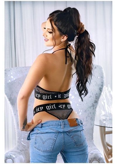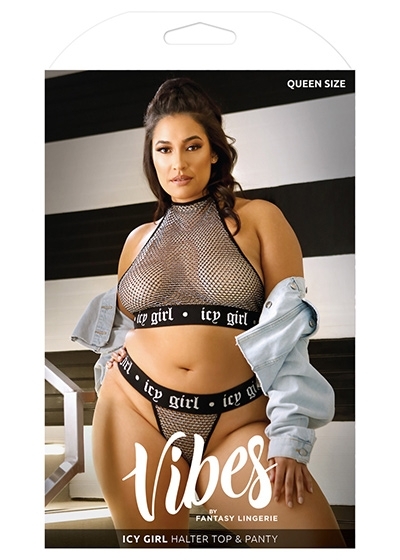 Metallic Fishnet Halter Top & Matching Panty with "Icy Girl" Elastic