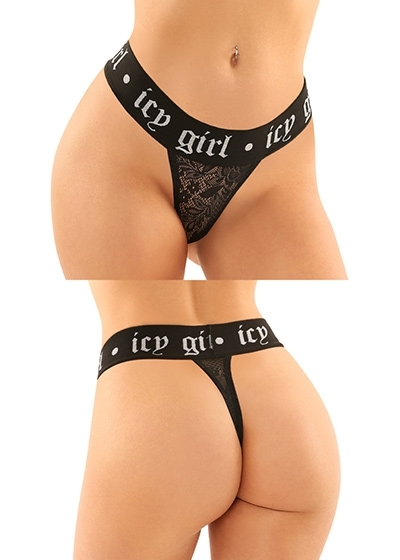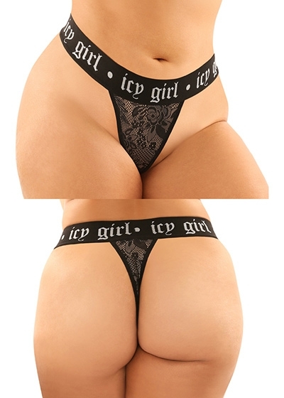 2 Piece Metallic Boyfriend Brief & Lace Thong with "Icy Girl" Elastic