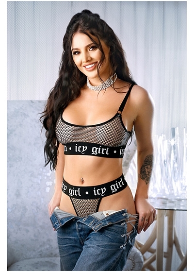 Metallic Fishnet Bralette & Matching G-string Panty with "Icy Girl" Elastic