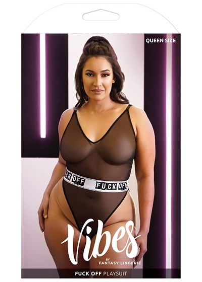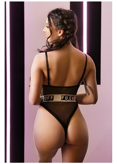 Cheeky Mesh Playsuit with "Fuck Off" Elastic Waistband