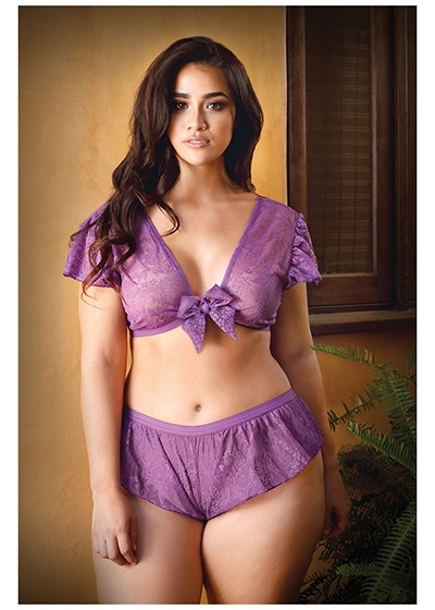 Kate Tie Front Lace Crop Top With Matching Tap Panty Plus Size
