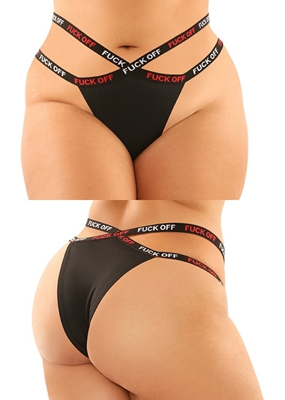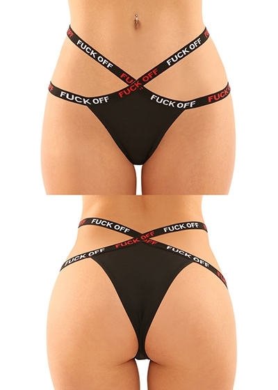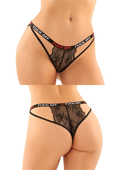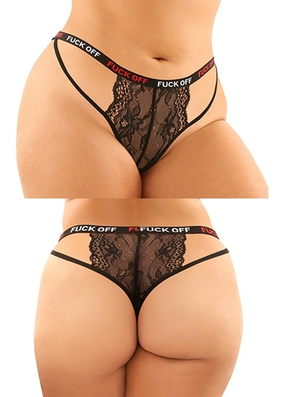 2 Piece Cutout Lace Panty & Caged Micro Thong with "Fuck Off" Elastic