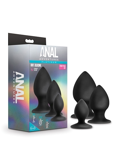 Anal Adventures Platinum Silicone Anal Stout Plug Kit Black