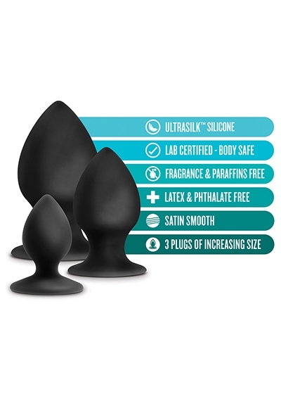 For anyone looking to explore new anal sensations alone or with a partner! Anal Adventures provides many options to choose from. This kit has 3 tapered girthy plug sizes to move up from small to large and achieve a comfortable stretch! The Ultrasilk™ Silicone, with it's silky smooth feel, warms with your body heat.