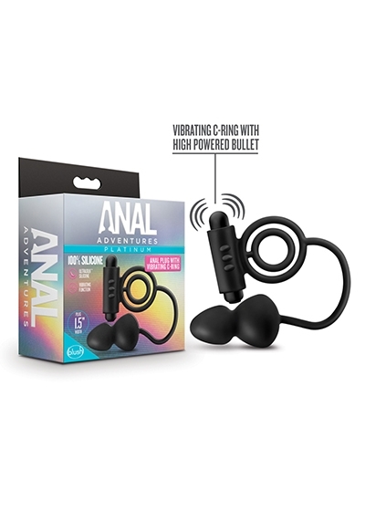 Anal Adventures Platinum Silicone Anal Plug With Vibrating C-Ring Black