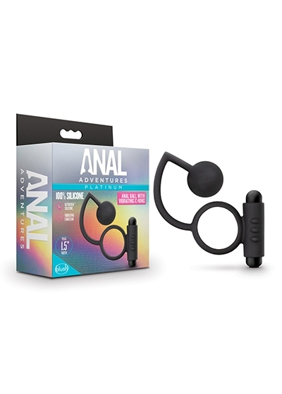 Anal Adventures Platinum Silicone Anal Ball With Vibrating C-Ring Black