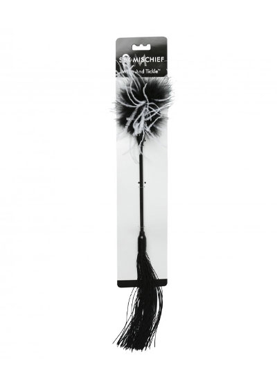A thin flexible 16 in rod unites the sublime pleasure of whisper-soft marabou fe athers with the playful sting of rubber tails producing a wickedly romantic way to explore the sensation of intimacy. It's the perfect combination of soft and sexy with black and white detailing. A perfect accessory to your favorite lingerie ensemble.