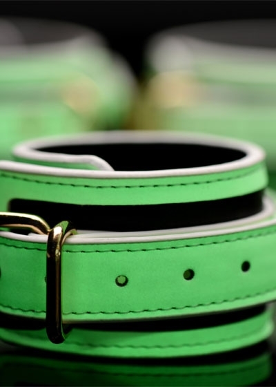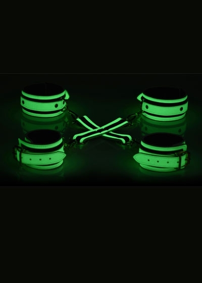 • A Glowing Set of Restraints: Wrist cuffs, ankle cuffs, and hogtie included - everything you need for a night light bondage