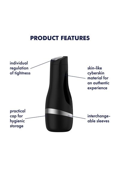Thanks to the innovative internal pressure regulator, you can provide extra intensity when playing with the Satisfyer Men Classic. Additional sleeves with varied structures can be purchased and easily exchanged - so you'll always find the right sleeve for your mood! For a smooth experience, we recommend the additional use of lubricant, e.g. from Satisfyer.