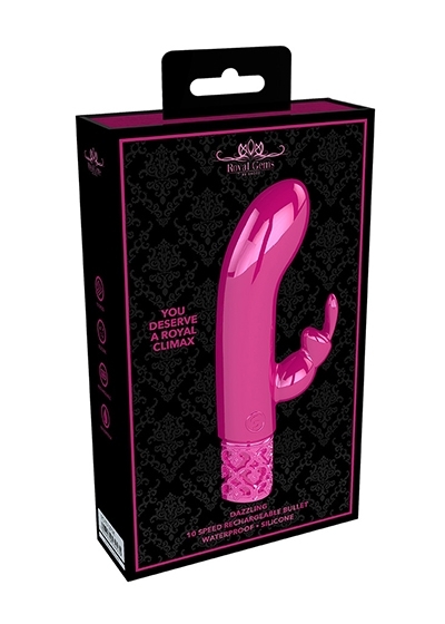You don't need to be royalty to enjoy this elegant line. Hidden beneath it's silky-smooth medical grade silicone exterior lies a pedigree unmatched. DAZZLING is the miniature version of the classic rabbit. But don't let its size fool you, as it is more than capable to get the job done. The magnetic fully rechargeable proprietary New Generation F-1 motor design delivers mind blowing vibrations uniformly across the full surface of the toy. Don't settle for the common, choose to be royal.