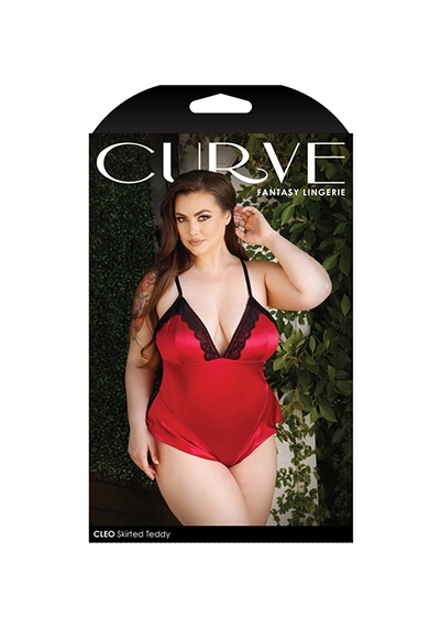 Satin Skirted Teddy with Lace Trim Neckline and Adjustable Shoulder Straps