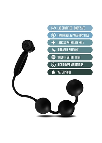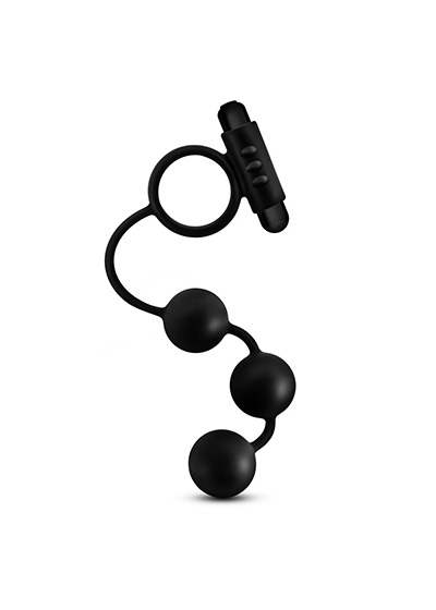 Anal Adventures Platinum Silicone Anal Beads With Vibrating C-Ring Black