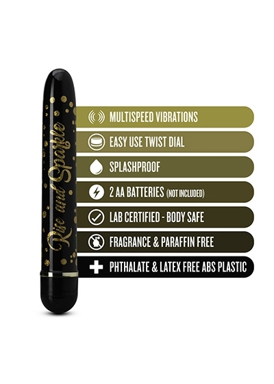 Who knew pleasure could be this cute? The Collection "Rise and Sparkle" is a perfect gift for yourself or your lover. This vibe's sparkling message will make you smile with joy every time you use it. Quiet and discreet, Rise and Sparkle delivers strong multi-speed vibrations, controlled by an easy twist dial. Made of smooth ABS plastic, it's body safe and splashproof for easy cleaning. Requires 2 AA batteries (not included).