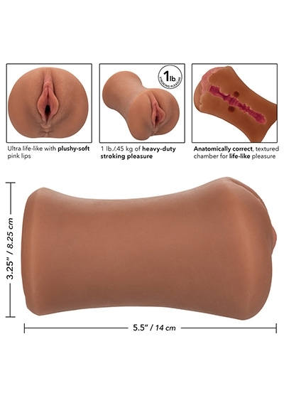 The juicy stroker sleeve is great for anyone wanting a little extra oomph in their solo play. Over 1 pound of PureSkin material make for the truly heavy-duty, pounding pleasure you've been craving. The indulgent stroker has a textured, anatomically correct chamber for explosive stimulation. Use this close-ended sleeve with ample lubrication for powerful suction worthy of your naughtiest fantasies.