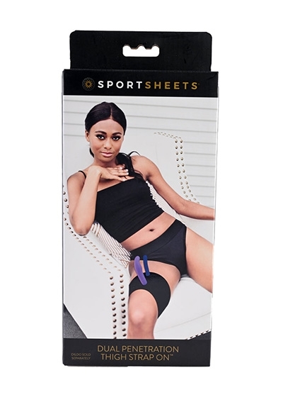 Discover new planes of intimacy. The Sportsheets® Dual Penetration Thigh Strap On is built on a wide band in soft, stretchy neoprene making it comfortable for all bodies, and set with two fully stitched and reinforced nitrile O Rings measuring 1.75 and 1.25 inches that securely hold the Sportsheets® dildos of your choice. The Dual Penetration Thigh Strap On’s generous 29 inch unstretched length and hook and loop closure allow a user customized ?t with plenty of ?exibility that can be utilized for many types of mobility. Give your playmate the thrill of multiple partners or try strapping it to a pillow or piece of furniture for hands free solo play. For use with 1.75" O Ring compatible dildos and 1.25" O Ring compatible dildos.