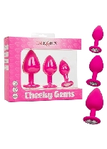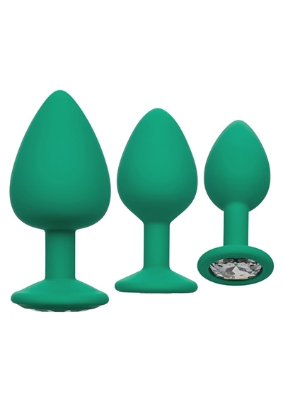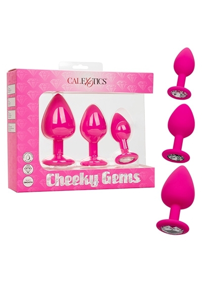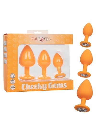 Open yourself up to the fabulously frisky world of backdoor pleasure with the Cheeky Gems. The glamorous anal training kit includes a set of 3 graduated anal plugs with a gem base to let you safely and comfortably increase passionate anal stimulation. The view gets even better from behind with the sparkling oversized gem base. To enjoy everything the exhilarating world of anal play has to offer, training is in order to ensure total safety and satisfaction. Each probe in our kit gradually increases in length and girth for superb pleasure at any level of pleasure play. While each increase of your training expands your horizons, use the sparkling gem adorned base for steamy stimulation, effortless insertion and gentle removal. The flexible probes are made from a smooth, seamless silicone. This body safe material is unscented and phthalate free to keep your most sensitive spots happy and healthy