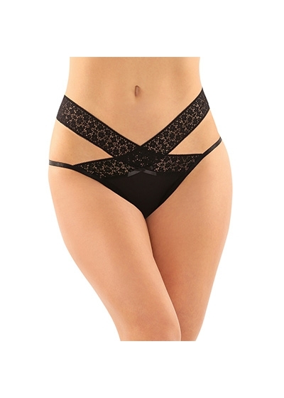 Microfiber Brazilian-Cut Panty with Criss-Cross Lace Waistband