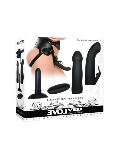 - Remote hands-free vibrator with 2 sleeves & harness