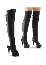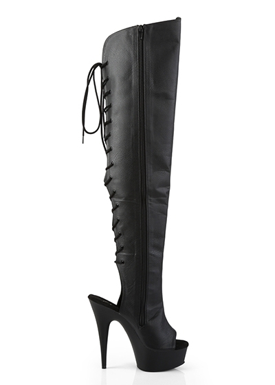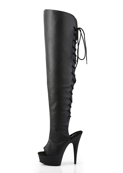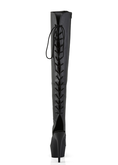 6" (15.2cm) Stiletto Heel, 1 3/4" (4.5cm) Platform Open Toe/Heel Lace-Up Back Over-The-Knee Boot, Full Length Inner Side Zip Closure.