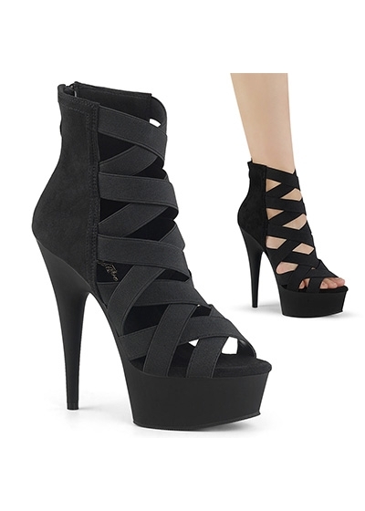 Pleaser 6" Heel, 1 3/4" PF Criss Cross Bootie Sandal, Back Zip