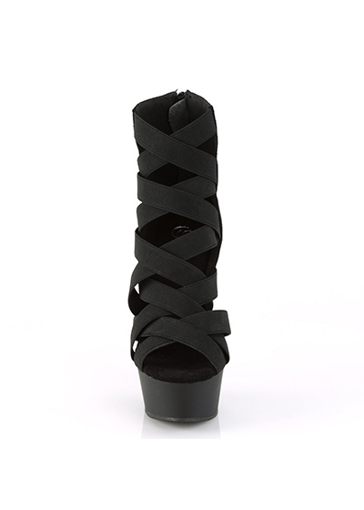 6" (152mm) Heel, 1 3/4"(45mm) Platform Cage Style Open Toe Lattice Design Bootie Sandal w/ Criss Cross Elastic Straps, Back Zip Closure