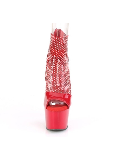 7" (178mm) Heel, 2 3/4" (70mm) Platform Close Back Rhinestone Mesh Shootie Sandal w/Elastic Ankle Band, Back Zip Closure