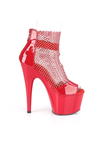 Pleaser 7" Heel, 2 3/4" PF Close Back Shootie Sandal, Back Zip Red