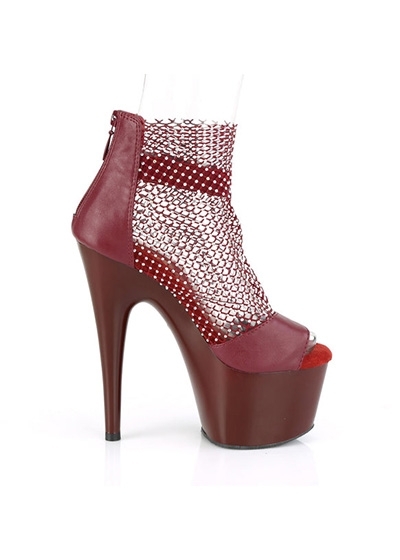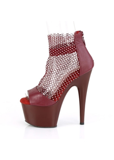 Pleaser 7" Heel, 2 3/4" PF Close Back Shootie Sandal, Back Zip Burgundy