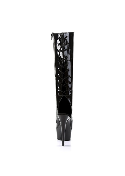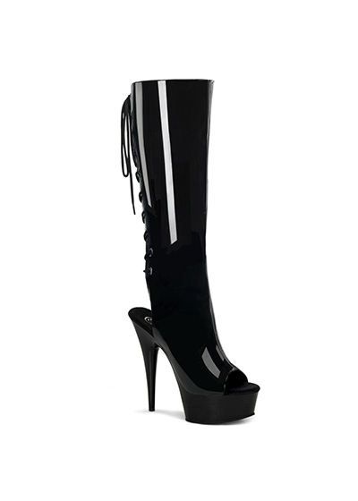6" (15.2cm) Stiletto Heel, 1 3/4" (4.5cm) Platform Open Toe/Heel, Lace-Up Back Knee High Boot, Full Inner Side Zipper