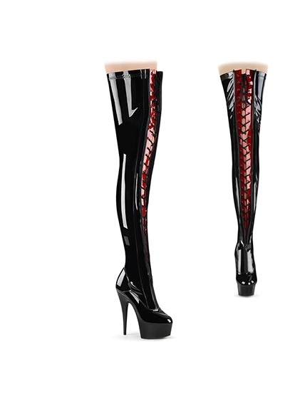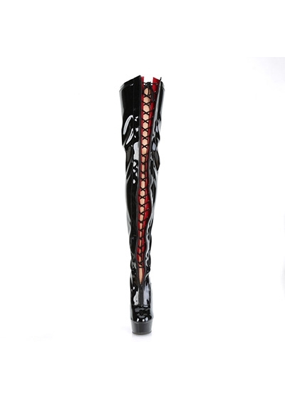 6" (152mm) Heel, 1 3/4" (45mm) Platform Two Tone Lace-Up/ Zip-UpThigh High Boot, Full Length Front Zip & 10" Back Zip Closure
