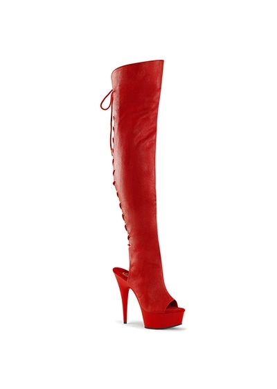 Pleaser 6" Heel, 1 3/4 PF Open Toe/Heel Over-The-Knee Boot, Side Zip