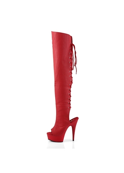 6" (15.2cm) Stiletto Heel, 1 3/4" (4.5cm) Platform Open Toe/Heel Lace-Up Back Thigh High Boot, Full Inner Side Zipper