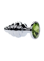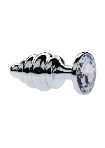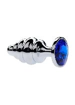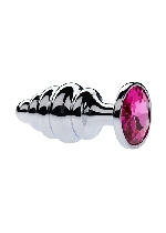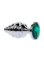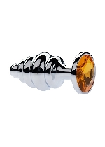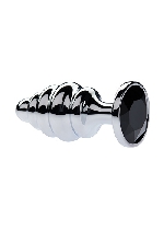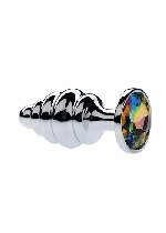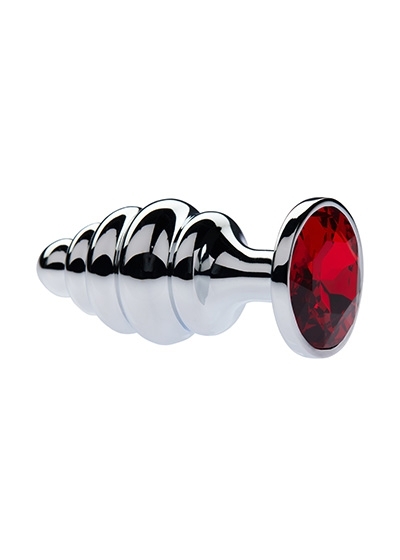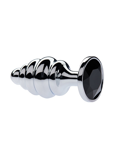 Experience a wild ride in anal exploration with the Ribbed Alloy Gemmed Butt Plug from the Kink Range!