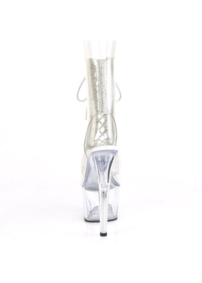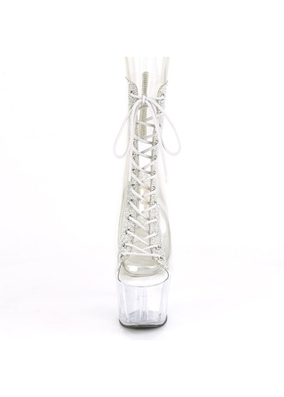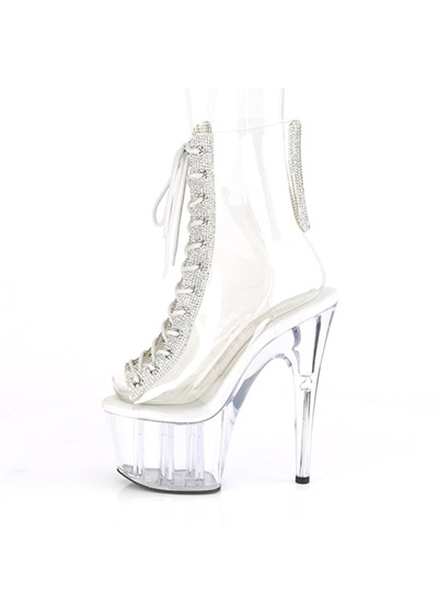 7" (178mm) Heel, 2 3/4" (70mm) Platform Open Toe/Heel Lace-Up Front Ankle Boot w/Rhinestone Embellishment Along Front Panels & Back