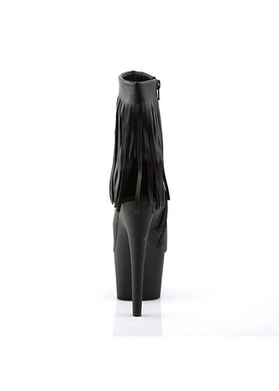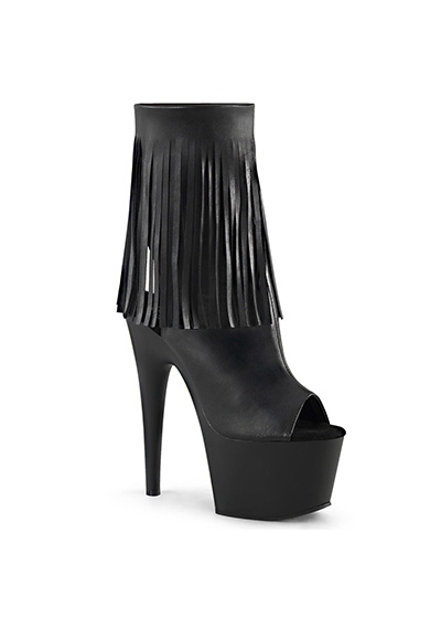 7" (17.8cm) Stiletto Heel, 2 3/4" (7cm) Platform Open Toe/Stiletto Heel Fringe Ankle Boot, Inside Zip Closure