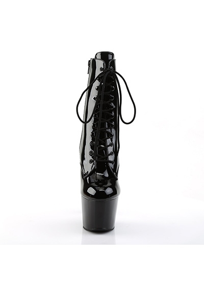 Pleaser 7" Stiletto Heel Lace-Up Platform Ankle Boot, Side Zip Patent/Black