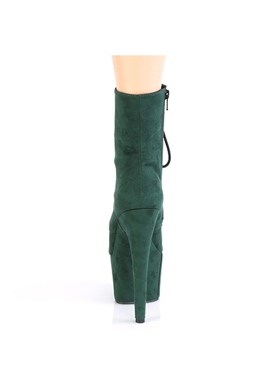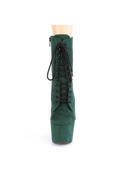 Pleaser 7" Heel, 2 3/4" Platform Lace-Up Ankle Boot, Side Zip Emerald Green