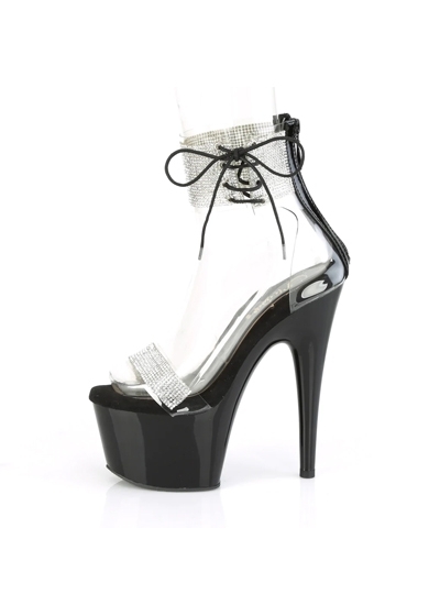 Pleaser 7" Heel, 2 3/4" PF Ankle Cuff Sandal w/Rhinestone, Back Zip, Clear-Black/Black