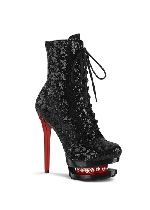 Pleaser 6" Heel, 1 1/2" PF Two Tone Lace-Up Sequined Ankle Boot, Black Sequins/Black-Red