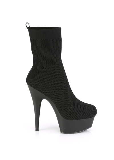 Pleaser 6" Heel, 1 3/4" PF Pull-on Stretch Sock-Like Ankle Boot, Black Fabric/Black Matte