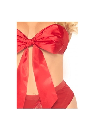 2 Pc Satin Ribbon Gift Bandeau With Hook-N-Eye Back and Matching G-String