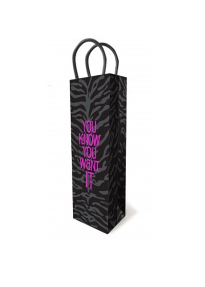 Unlike other gift bags, you’ll be proud to wrap your naughty gifts in these playfully suggestive bags. They look expensive and feel amazing! High quality, unique luxury gift bags made of thick, sturdy cardstock paper with elegant woven handles. A standard wine-size gift bag with black-on-black velvet-like flocked tiger pattern is imprinted with a magenta foil stamp that that calls out "You Know You Want It!”. This delightful bag is the perfect size for gifting a vibrator and is as fun to give as it is to receive.