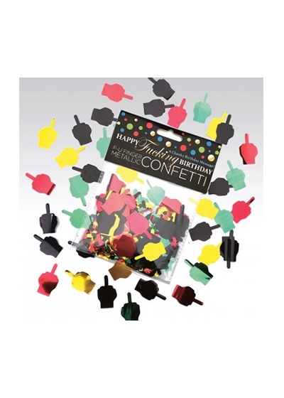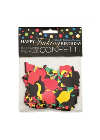Happy Fucking Birthday line of partywares are approved by anyone with a good sense of humoe enjoys a good laugh on their special day! This line of hilarious party products has been regarded by media outlets worldwide as the " Official line of adult-themed party products of 2022”. This beautifully patterned line of tableware and playful decor features 3 oz of metallic 1.5" high quality fuck you finger confetti. Turn your next ordinary party into a fucking high class function with any of our fine party products.