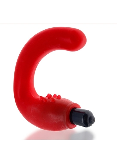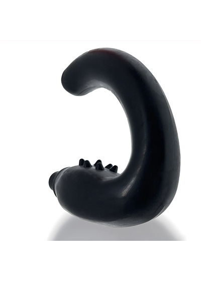 The design easy to hold and maneuver with a nubby texture on top of the strong bullet vibe for extra taint-tickle--this is the handle you grip to slide the thumb-thick all smooth shaft inside.