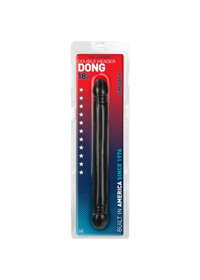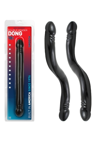 Get the Doc Johnson's PVC 18 inch Double Header Dong and prepare for a double delight classic! The Doc Johnsons 18 inch Double Header Dong has a phallic head on each end and a smooth shaft for internal bliss. The dong is flexible for solo play and long enough for partner penetration. It is made from phthalate-free body-safe material, proudly made in America.