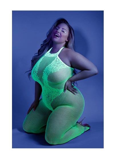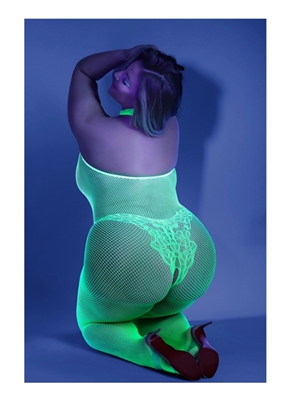 Crotchless Fishnet Bodystocking with Lace Detailing